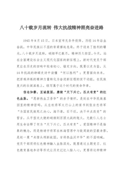 【七哥公文】2025年:八十载岁月流转 伟大抗战精神照亮奋进路+更多免费公文+VX:QiGeGongWen2024