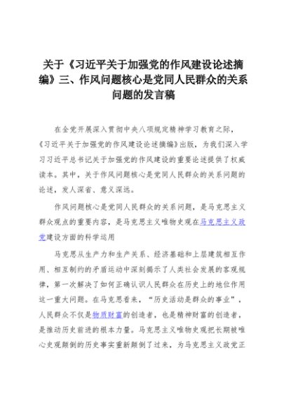 【七哥公文】2025年:关于《习近平关于加强党的作风建设论述摘编》三、作风问题核心是党同人民群众的关系问题的发言稿+更多免费公文+VX:QiGeGongWen2024