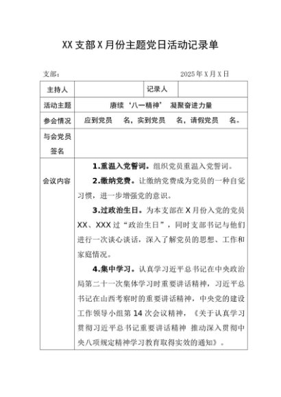 / 【七哥公文】2025年:主题党日模板08+更多免费公文+VX:QiGeGongWen2024
