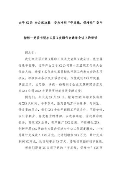 【七哥公文】2025年:大干XX天 全力抓决胜 奋力冲刺“守底线、促增长”奋斗指标—党委书记在X届X次职代会选举会议上的讲话+更多免费公文+VX:QiGeGongWen2024