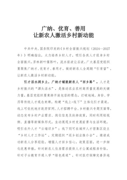 / 【七哥公文】2025年:广纳、优育、善用,让新农人激活乡村新动能+更多免费公文+VX:QiGeGongWen2024