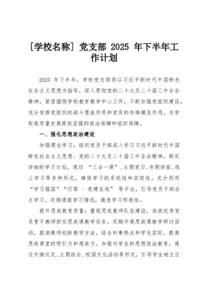 / 【七哥公文】2025年:学校党支部-2025年下半年工作计划+更多免费公文+VX:QiGeGongWen2024