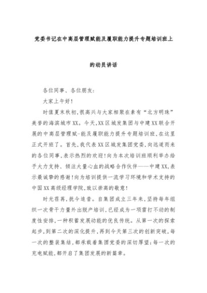 【七哥公文】2025年:党委书记在中高层管理赋能及履职能力提升专题培训班上的动员讲话+更多免费公文+VX:QiGeGongWen2024
