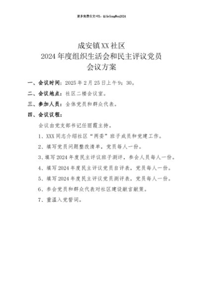 / 【七哥公文】2025年:民主评议会议方案+更多免费公文+VX:QiGeGongWen2024