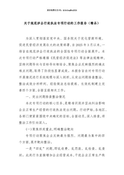 / 【七哥公文】2025年:关于规范涉企行政执法专项行动的工作报告(精品)+更多免费公文+VX:QiGeGongWen2024