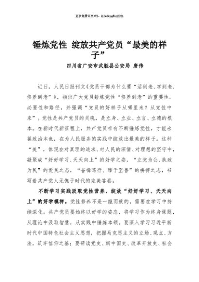 / 【七哥公文】2025年:锤炼党性 绽放共产党员“最美的样子”+更多免费公文+VX:QiGeGongWen2024