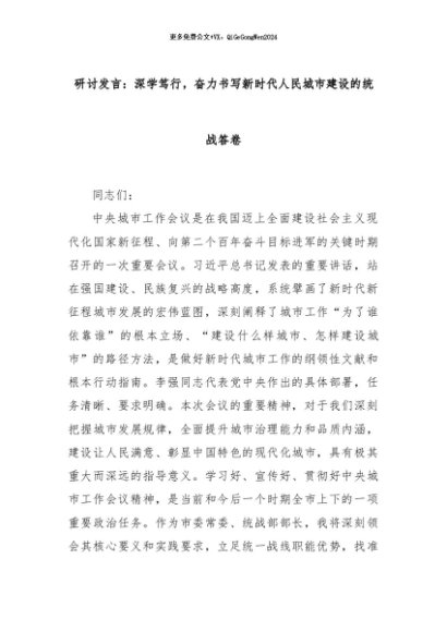 【七哥公文】2025年:研讨发言:深学笃行,奋力书写新时代人民城市建设的统战答卷+更多免费公文+VX:QiGeGongWen2024