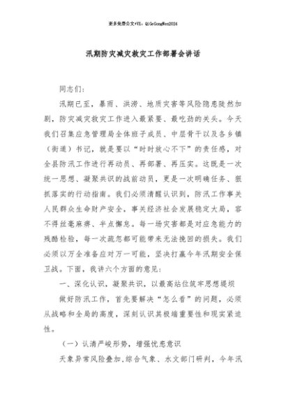 / 【七哥公文】2025年:汛期防灾减灾救灾工作部署会讲话+更多免费公文+VX:QiGeGongWen2024