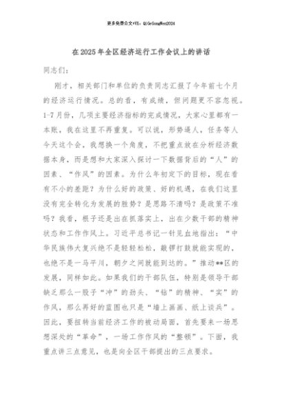 / 【七哥公文】2025年:在2025年全区经济运行工作会议上的讲话+更多免费公文+VX:QiGeGongWen2024