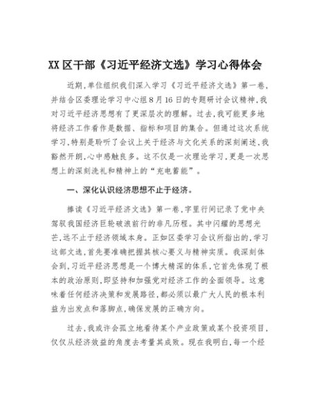 【七哥公文】2025年:XX区干部《习近平经济文选》学习心得体会+更多免费公文+VX:QiGeGongWen2024