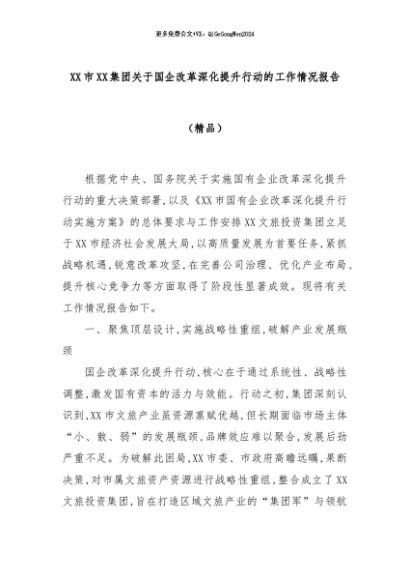 【七哥公文】2025年:XX市XX集团关于国企改革深化提升行动的工作情况报告(精品)+更多免费公文+VX:QiGeGongWen2024