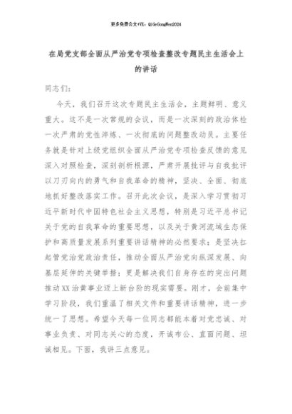 【七哥公文】2025年:在局党支部全面从严治党专项检查整改专题民主生活会上的讲话+更多免费公文+VX:QiGeGongWen2024
