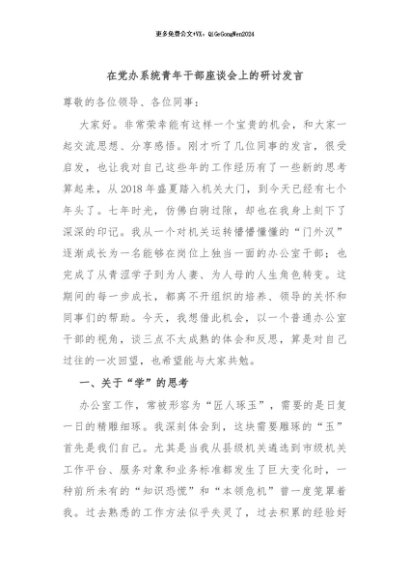 / 【七哥公文】2025年:在党办系统青年干部座谈会上的研讨发言+更多免费公文+VX:QiGeGongWen2024