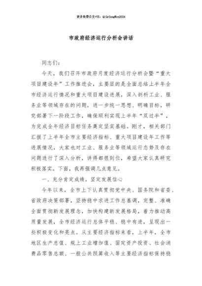 / 【七哥公文】2025年:市政府经济运行分析会讲话+更多免费公文+VX:QiGeGongWen2024