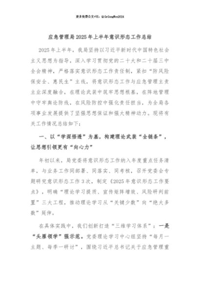 / 【七哥公文】2025年:应急管理局2025年上半年意识形态工作总结+更多免费公文+VX:QiGeGongWen2024