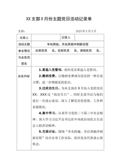 / 【七哥公文】2025年:主题党日模板02+更多免费公文+VX:QiGeGongWen2024