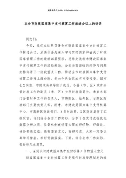 / 【七哥公文】2025年:在全市财政国库集中支付核算工作推进会议上的讲话+更多免费公文+VX:QiGeGongWen2024
