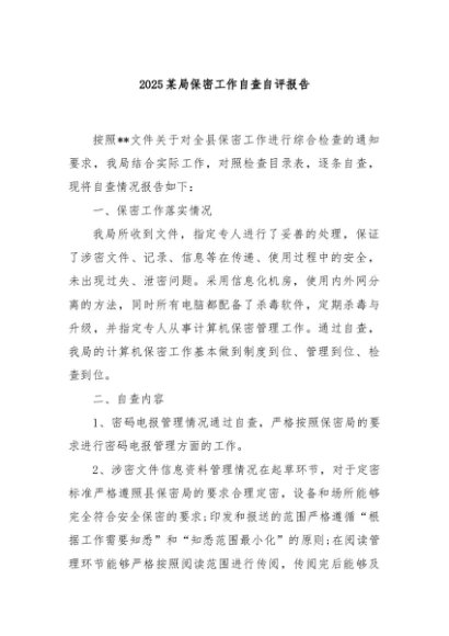 / 【七哥公文】2025年:2025某局保密工作自查自评报告+更多免费公文+VX:QiGeGongWen2024