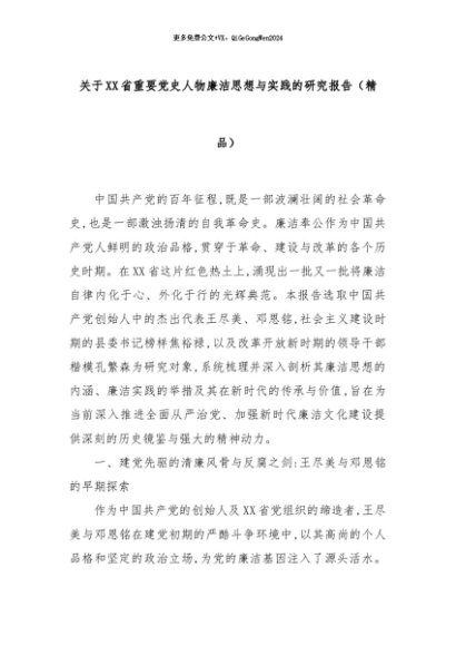 【七哥公文】2025年:关于XX省重要党史人物廉洁思想与实践的研究报告(精品)+更多免费公文+VX:QiGeGongWen2024