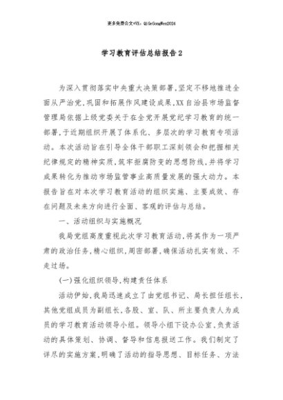 / 【七哥公文】2025年:学习教育评估总结报告2+更多免费公文+VX:QiGeGongWen2024