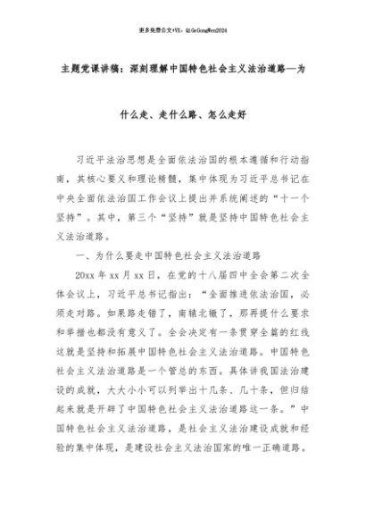 【七哥公文】2025年:主题党课讲稿:深刻理解中国特色社会主义法治道路—为什么走、走什么路、怎么走好+更多免费公文+VX:QiGeGongWen2024