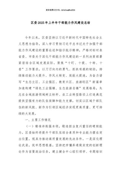 / 【七哥公文】2025年:区委2025年上半年干部能力作风建设总结+更多免费公文+VX:QiGeGongWen2024