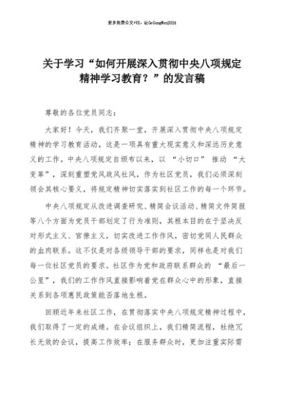 【七哥公文】2025年:学习“如何开展深入贯彻中央八项规定精神学习教育?”的发言稿+更多免费公文+VX:QiGeGongWen2024