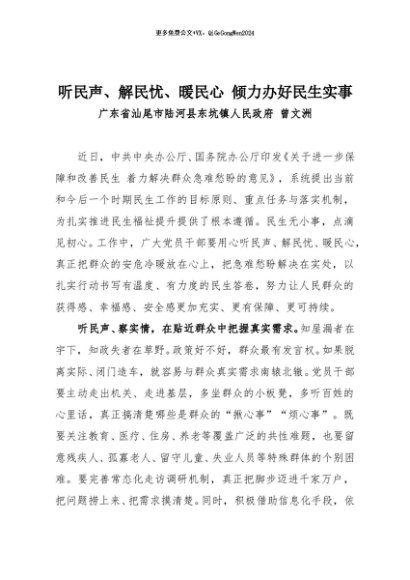 / 【七哥公文】2025年:听民声、解民忧、暖民心 倾力办好民生实事+更多免费公文+VX:QiGeGongWen2024