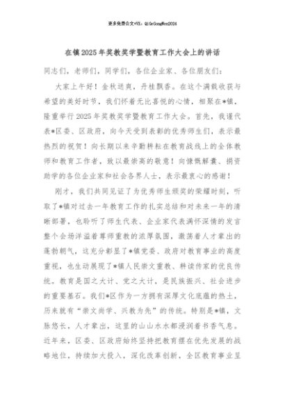 / 【七哥公文】2025年:在镇2025年奖教奖学暨教育工作大会上的讲话+更多免费公文+VX:QiGeGongWen2024
