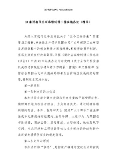 / 【七哥公文】2025年:XX集团有限公司容错纠错工作实施办法(精品)+更多免费公文+VX:QiGeGongWen2024