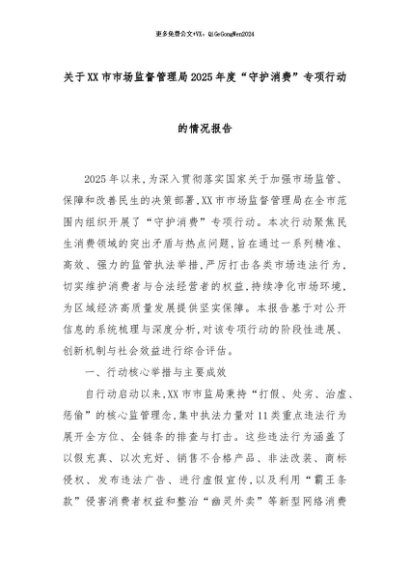 【七哥公文】2025年:关于XX市市场监督管理局2025年度“守护消费”专项行动的情况报告+更多免费公文+VX:QiGeGongWen2024