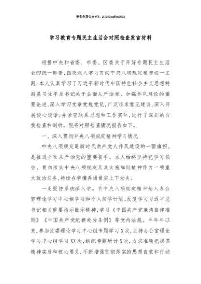 / 【七哥公文】2025年:学习教育专题民主生活会对照检查发言材料+更多免费公文+VX:QiGeGongWen2024