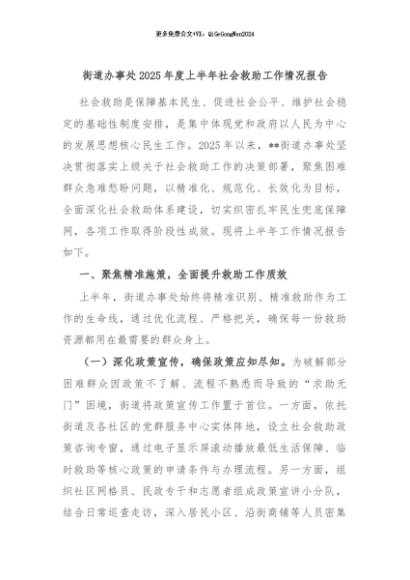 / 【七哥公文】2025年:街道办事处2025年度上半年社会救助工作情况报告+更多免费公文+VX:QiGeGongWen2024