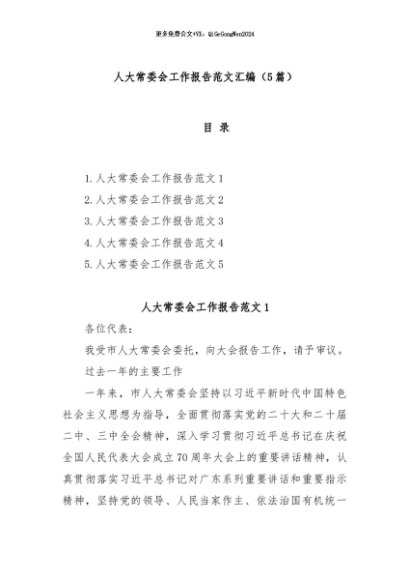 / 【七哥公文】2025年:(5篇)人大常委会工作报告范文汇编+更多免费公文+VX:QiGeGongWen2024