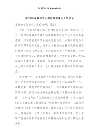 / 【七哥公文】2025年:在2025年教师节全镇教师座谈会上的讲话+更多免费公文+VX:QiGeGongWen2024