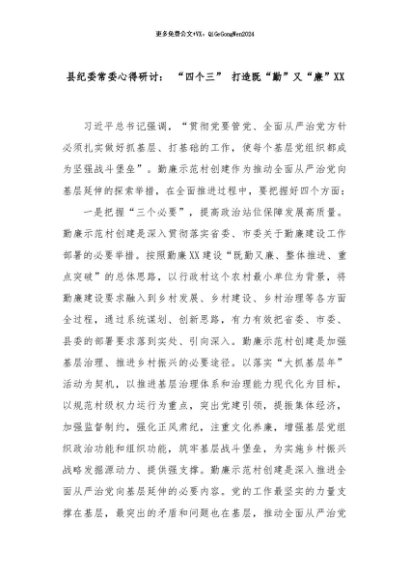 【七哥公文】2025年:县纪委常委心得研讨: “四个三” 打造既“勤”又“廉”XX+更多免费公文+VX:QiGeGongWen2024