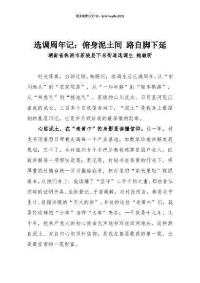 / 【七哥公文】2025年:选调周年记:俯身泥土间 路自脚下延+更多免费公文+VX:QiGeGongWen2024