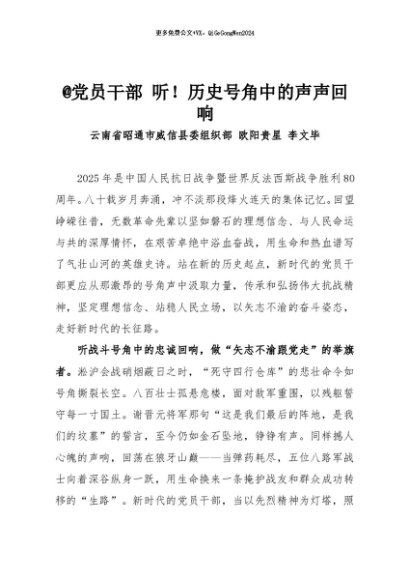 【七哥公文】2025年:@党员干部 听!历史号角中的声声回响+更多免费公文+VX:QiGeGongWen2024