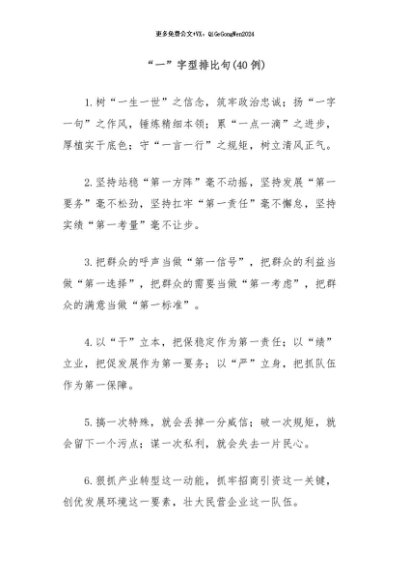 / 【七哥公文】2025年:(40例)“一”字型排比句2+更多免费公文+VX:QiGeGongWen2024