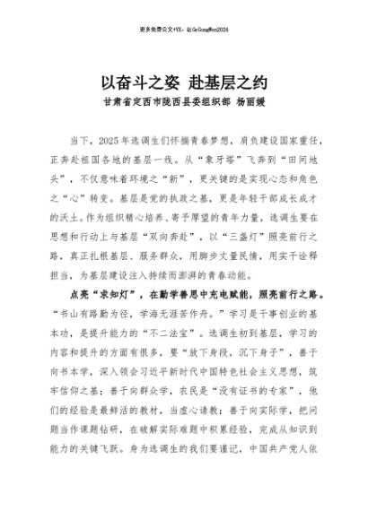 / 【七哥公文】2025年:以奋斗之姿 赴基层之约+更多免费公文+VX:QiGeGongWen2024