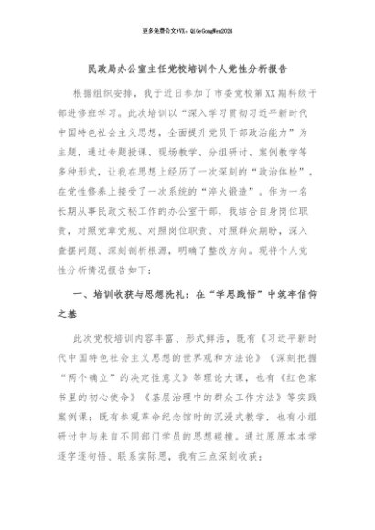 / 【七哥公文】2025年:民政局办公室主任党校培训个人党性分析报告+更多免费公文+VX:QiGeGongWen2024