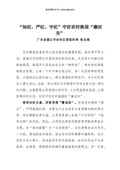 / 【七哥公文】2025年:“知纪、严纪、守纪”守好农村换届“廉洁关”+更多免费公文+VX:QiGeGongWen2024