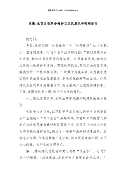 / 【七哥公文】2025年:党课:永葆自我革命精神在正风肃纪中砥砺前行+更多免费公文+VX:QiGeGongWen2024