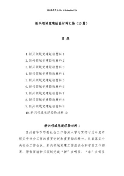 / 【七哥公文】2025年:(10篇)新兴领域党建经验材料汇编+更多免费公文+VX:QiGeGongWen2024