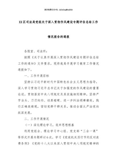 【七哥公文】2025年:XX区司法局党组关于深入贯彻作风建设专题评估总结工作情况报告的通报+更多免费公文+VX:QiGeGongWen2024