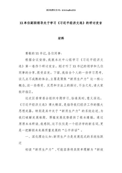【七哥公文】2025年:XX单位副职领导关于学习《习近平经济文选》的研讨发言材料+更多免费公文+VX:QiGeGongWen2024