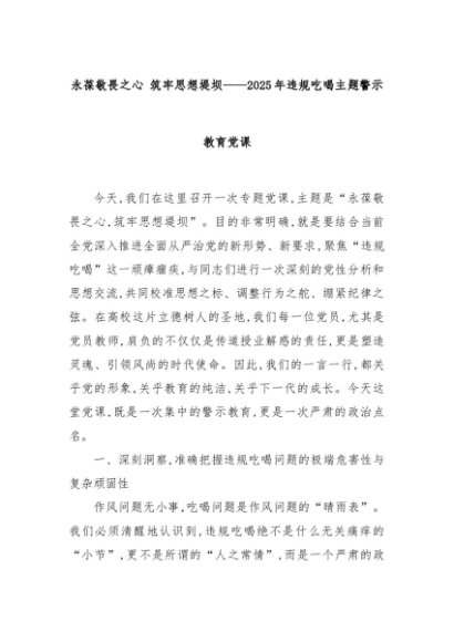 【七哥公文】2025年:永葆敬畏之心 筑牢思想堤坝——2025年违规吃喝主题警示教育党课+更多免费公文+VX:QiGeGongWen2024