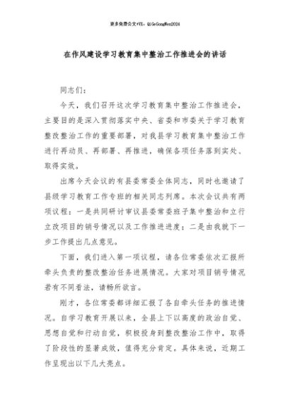 / 【七哥公文】2025年:在作风建设学习教育集中整治工作推进会的讲话+更多免费公文+VX:QiGeGongWen2024