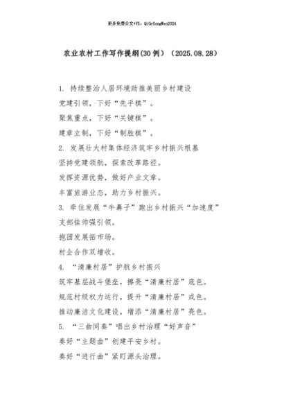 【七哥公文】2025年:(30例)农业农村工作写作提纲(2025.08.28)+更多免费公文+VX:QiGeGongWen2024