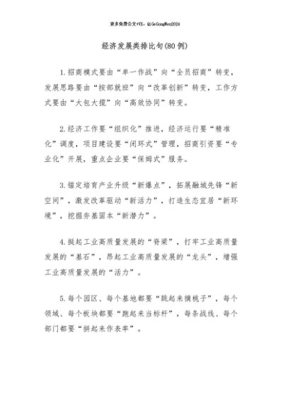 / 【七哥公文】2025年:(80例)经济发展类排比句+更多免费公文+VX:QiGeGongWen2024